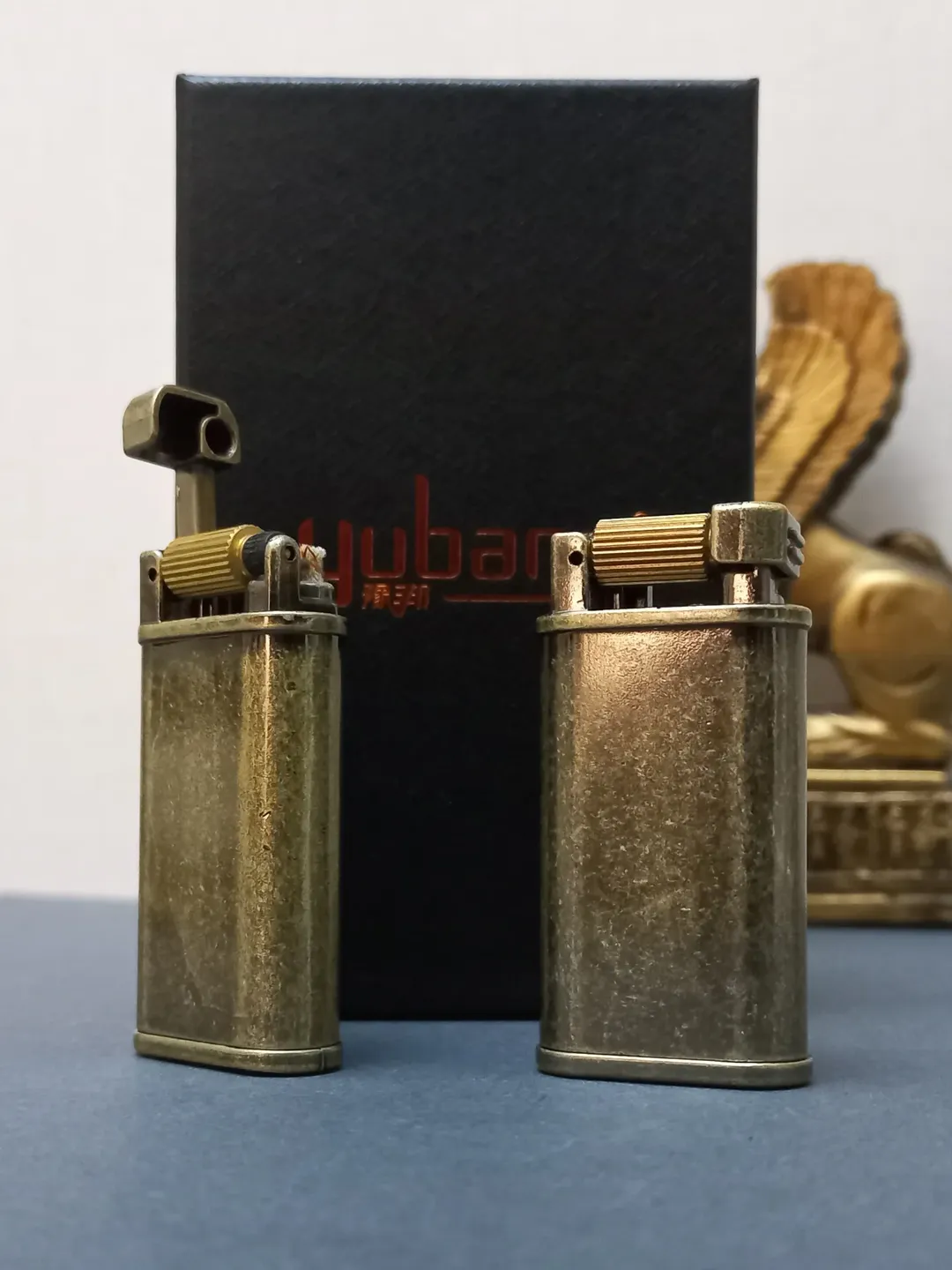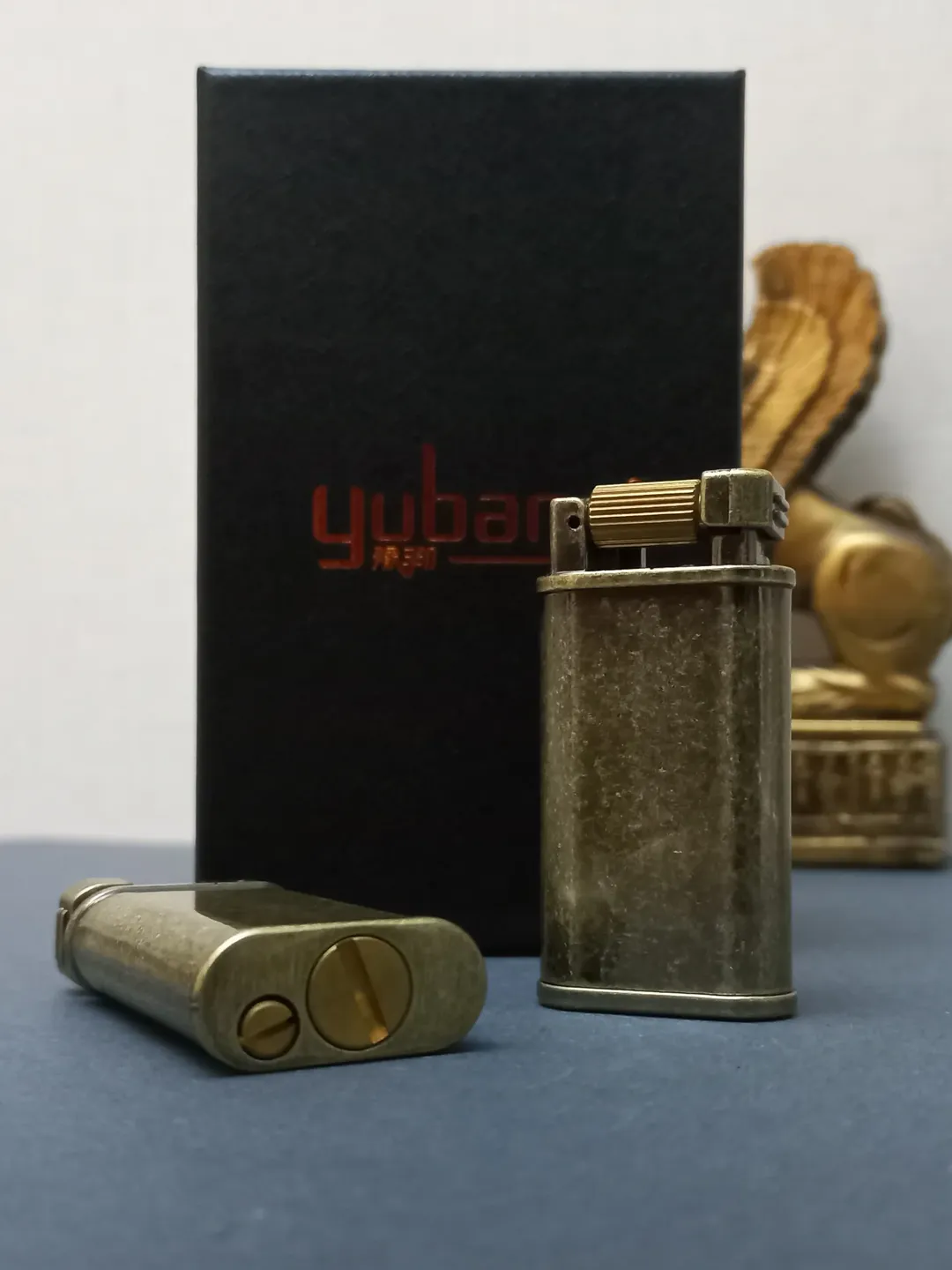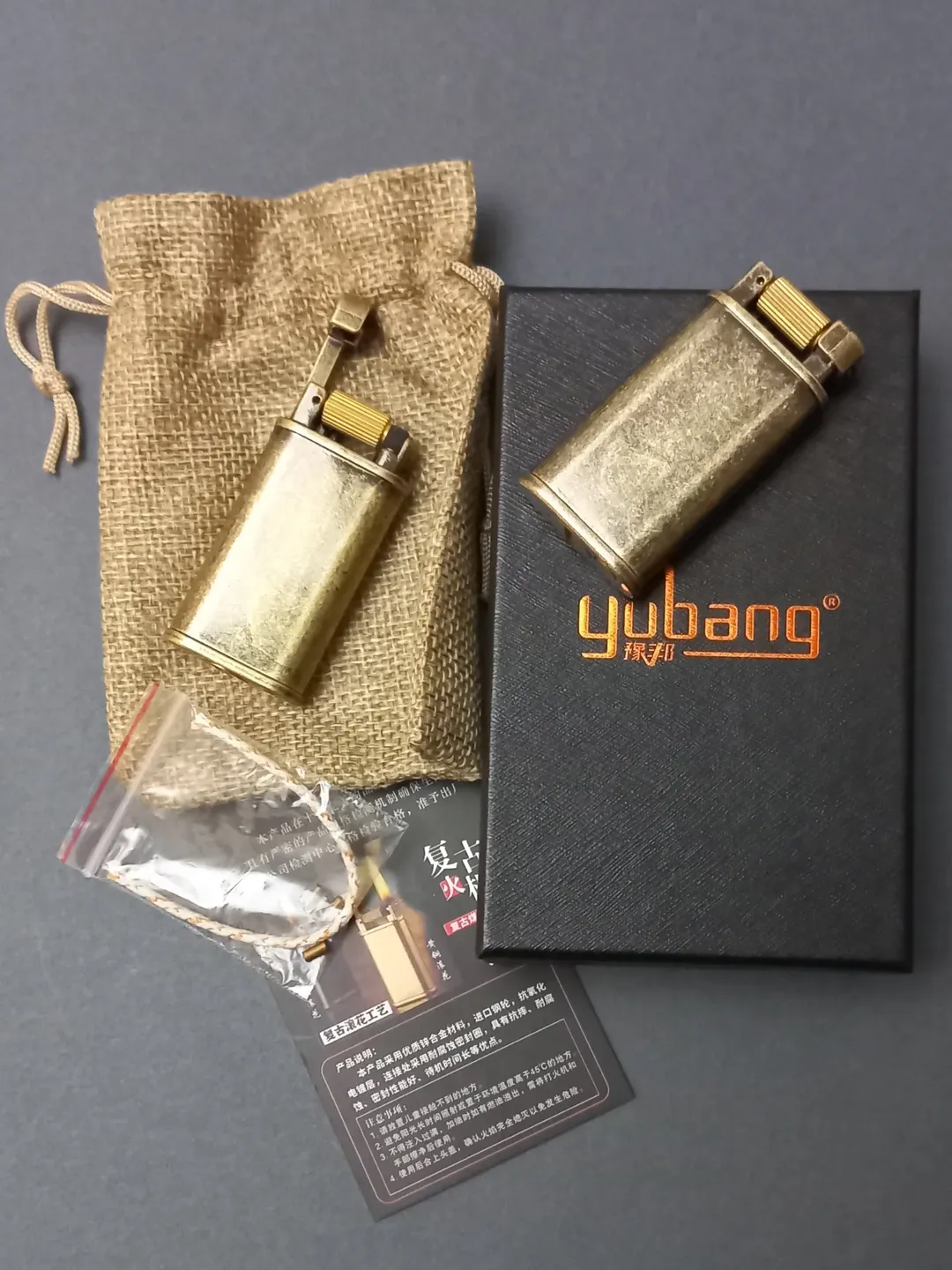 فندک بنزینی اورجینال برند یوبنگ طرح خاص و کلاسیک و باکیفیت همراه با جعبه فابریک، سنگ و فیتیله زاپاس، کاتالوگ و کاور پارچه ای برای فندک