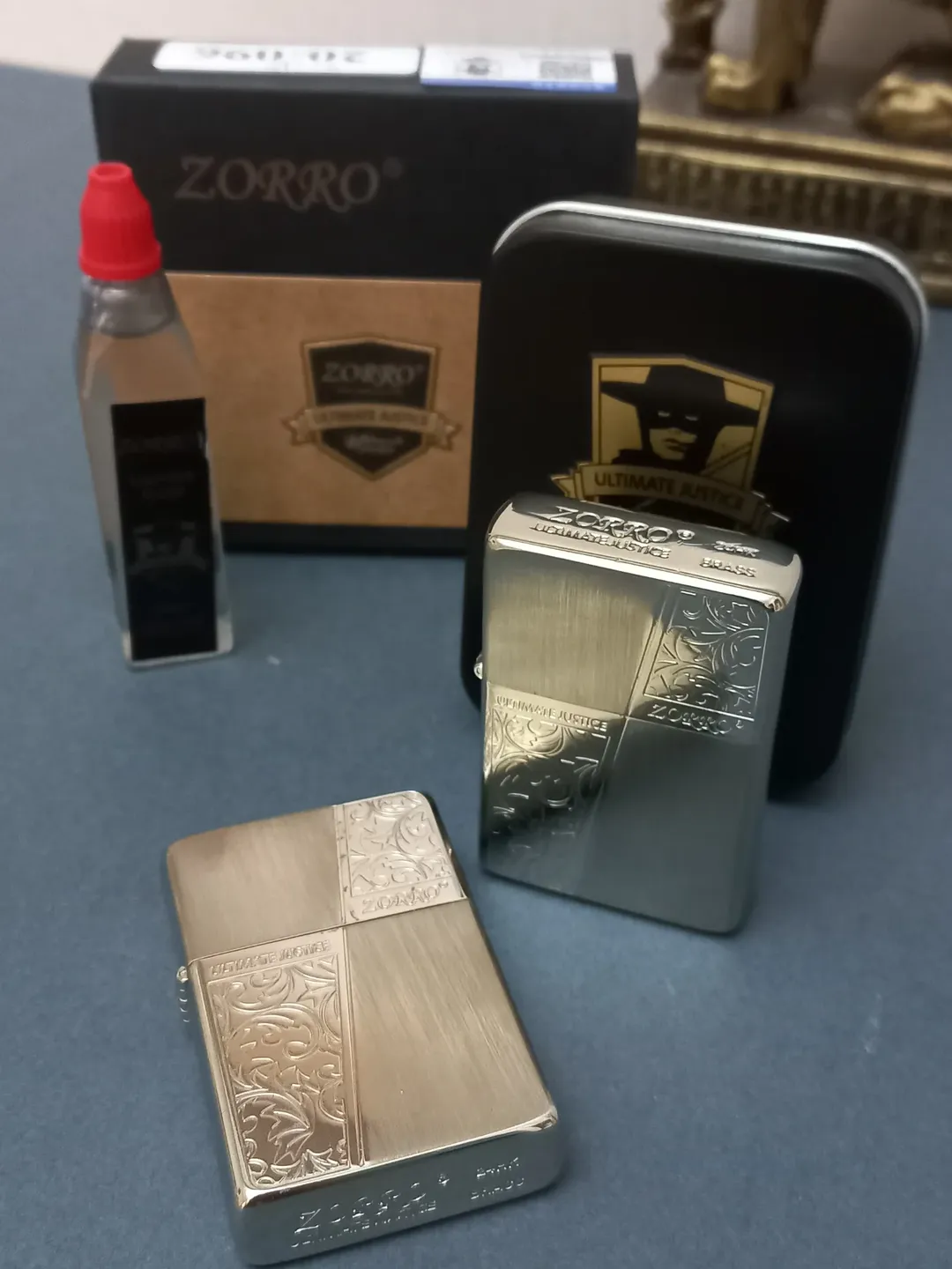 فندک بنزینی زورو با بدنه برنجی مدل : باتمزآپ .کیفیت فوقالعاده با صدای درب عالی همراه با جعبه فابریک فلزی، بنزین، کاتالوگ و کاورجعبه.