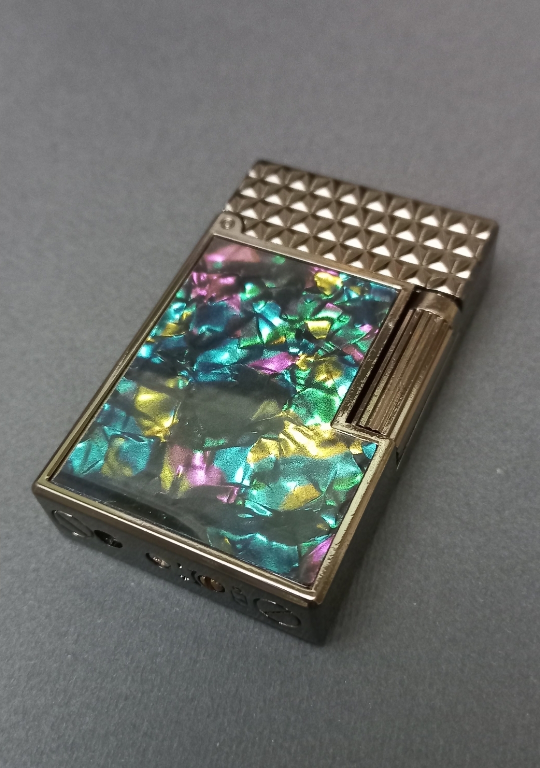 فندک گازی طرح دوپونت برند LIGHTER بدنه فلزی با روکش طرح صدف سنگ قابل تعویض، شعله قابل تنظیم همراه با جعبه